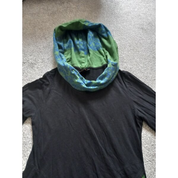 Angenem auf der Haut, Ärmel mit Stulpen, Maße: Achsel zu Achsel: ca 52 cm, Länge ( ohne Kragen): ca 53 cm