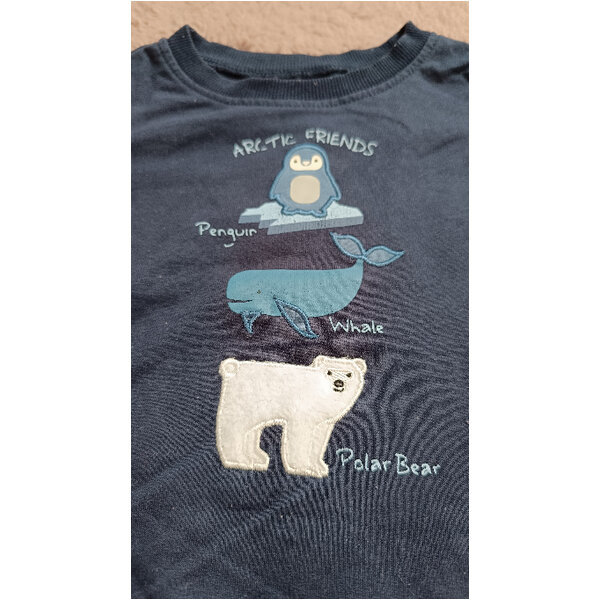 Pullover in Gr. 98 mit Eisbär, Pinguin und Wal. Wenig getragen, aber mit minimalem Waschpilling.