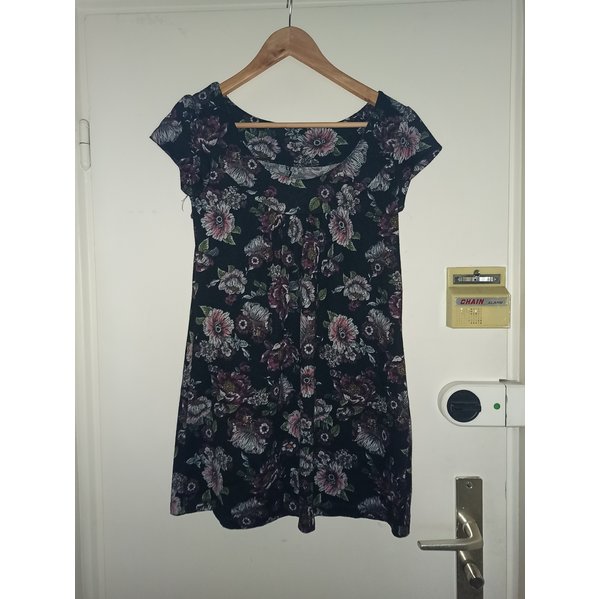 Hier gibt es einen langen Pullover, der gut mit einer langärmeligen Bluse darunter und einer Leggings oder Jeggings getragen werden kann. Die Länge liegt bei ca 75 cm. Von Achsel zu Achsel gemessen liegt die Breite bei 42 cm.