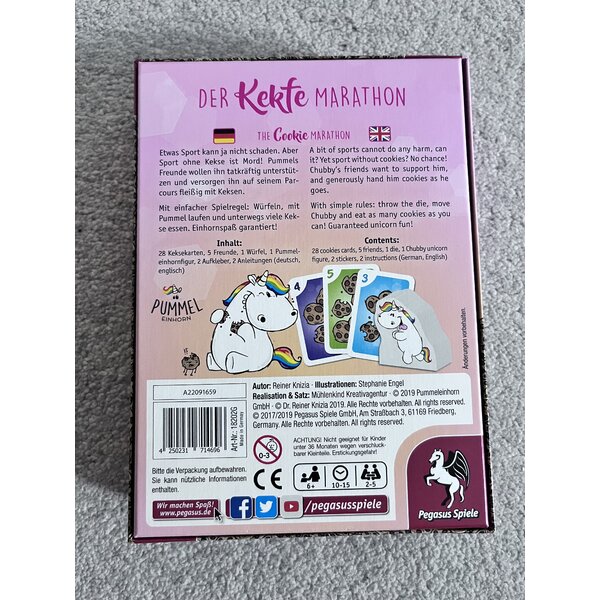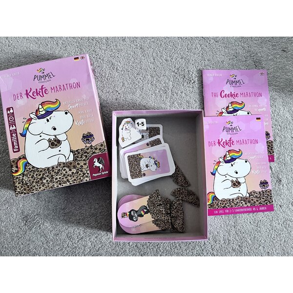 Mit einfacher Spielregel: Würfeln, mit Pummel laufen und unterwegs viele Kekse essen. Einhornspaß garantiert!