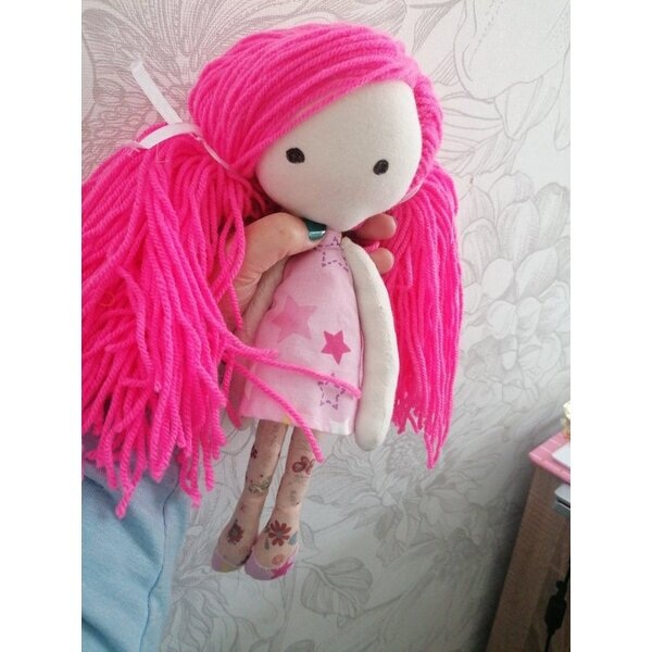 Puppe handgenäht pinke Haare (handmade handgenäht)