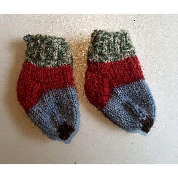 Handgestrickte Socken für Puppe 35 - 39 cm aus Sockenwolle von Woll Butt "Freeport" in grün, rot, blau und braun. Feines Bündchen am Beinabschluss. Ich gebe auch noch ein zweites Paar Puppensocken für ein Ticket ab, bei Bedarf bitte melden