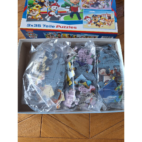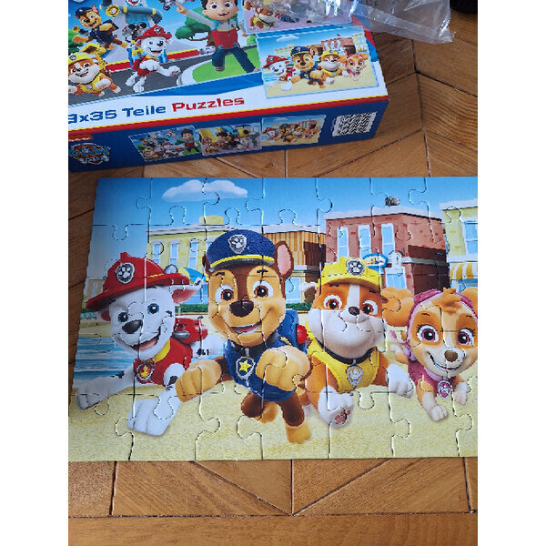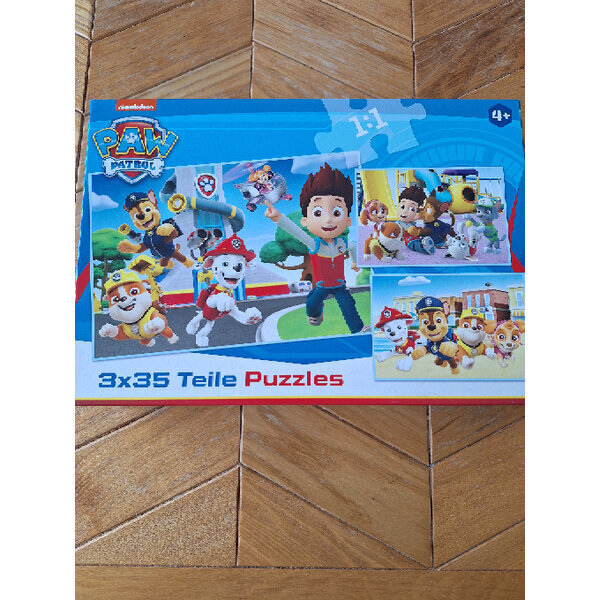 Schönes Set aus drei Puzzlen von Paw Patrol, jedes Puzzle besteht aus 35 Teilen. Das Puzzle ist für Kinder ab 4 Jahren geeignet.