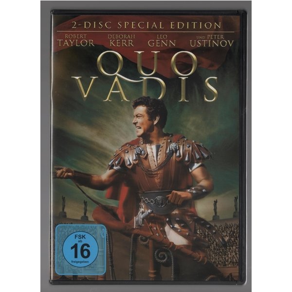 Covertetx:"Rom brennt. Nero spielt dazu auf der Leier. Die Christenheit strebt empor. Und die Kinobesucher standen Schlange, um sich diesen über Jahre gedrehten Filmgiganten, der für acht Oscars (darunter für den Besten Film) nominiert wurde, anzusehen. Robert Taylor spielt den Kommandanten einer Legion, dessen Liebe zu einer christlichen Sklavin die Kluft zwischen Römischem Reich und der zutiefst im Glauben verwurzelten Religionsgemeinschaft überbrückt. Und über allem waltet Nero. Er ist Caesar, Verrückter, Mörder - ein kaiserlicher Gebieter über die spektakuläre, dem Untergang geweihte Pracht, die Rom einst war."