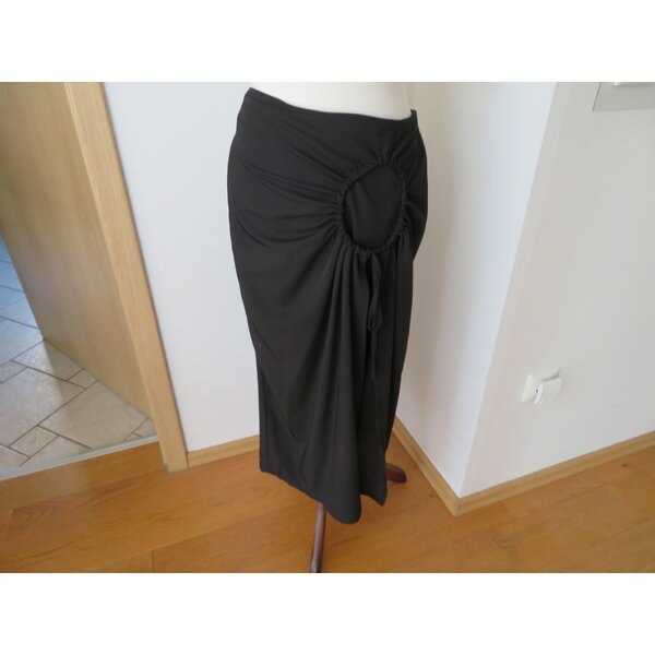 Maße: Bund ca. 38 cm - dehnt auc 50 cm, Länge außen ca. 75 cm, innen ca. 35 cm, Saumweite einfach ca. 50 cm, Höhe Gehschlitz ca. 60 cm