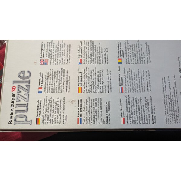 Karton minimal verdrückt, komplett, nicht einfach zu puzzlen, stabil ohne Klebstoff, knickbare Kunststoffteile