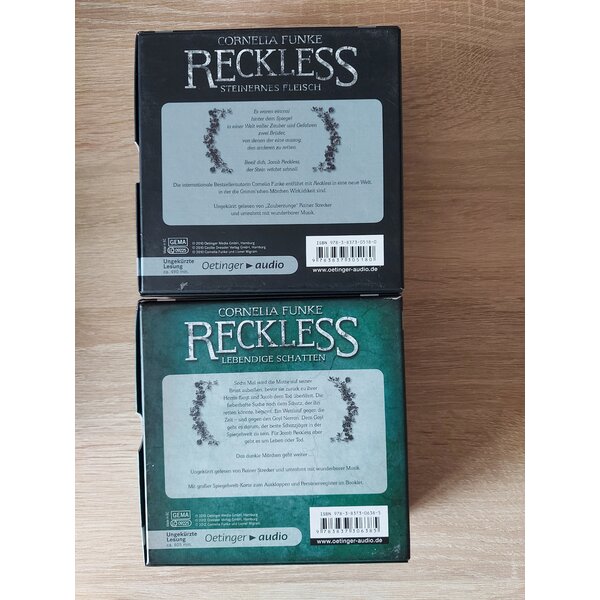 Die ersten beiden Reckless Bände: Steinernes Fleisch und Lebendige Schatten.