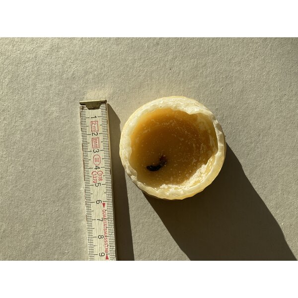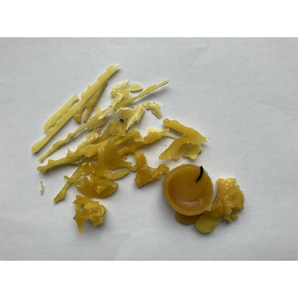 Rest mit Docht p l u s Rest einer weiteren Bienenwachskerze, siehe Foto 3, dieser ist minimal verschmutzt weil sie in einem Halter aus Beton gestanden hat