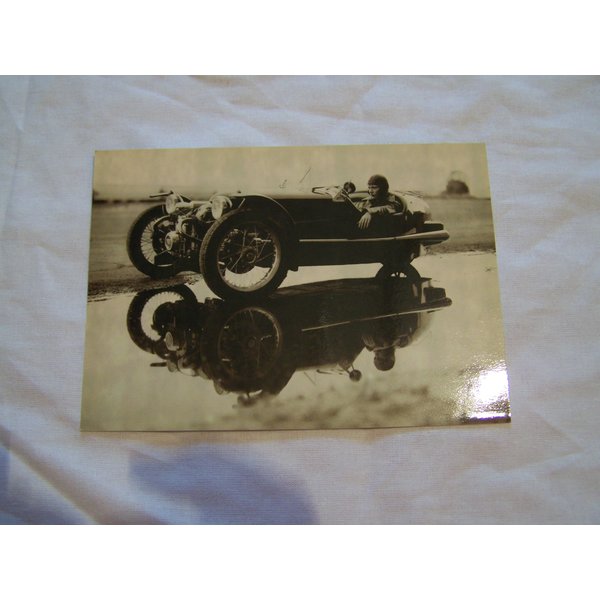 3:1 Tausch Retro s/w Postkarte Altes Rennauto mit Dame