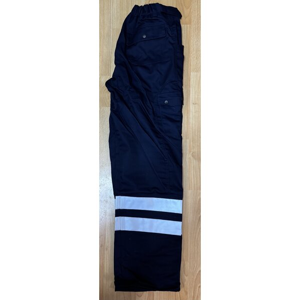 65 % Polyester und 35 % Baumwolle (Gewicht 270 g/m²) mit robustem, eingenähtem Kevlar Kniepolster. beschichtet mit schmutzabweisendem High Performance Repel Teflon zwei silberne Reflexstreifen von 3M (9910) Reißverschlüsse: von YKK Bund: Jeansknopf mit intelligentes Klett- und Gummizugsystem individuell größenverstellbar ist. Die Hose kann mit oder ohne Gürtel getragen werden. Die Hose ist für die Industriewäsche geeignet und bei maximal 60° waschbar. Taschen: Zwei seitliche Taschen Zwei Oberschenkel-Taschen mit Druckknöpfen und Kugelschreiberfach Eine Handy-/Meldertasche auf Hüfthöhe links Eine Gesäßtasche rechts
