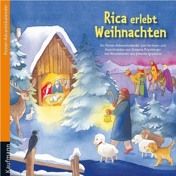 Wald treibt sich ein Mann im roten Mantel herum und eines Abends klopft es plötzlich am Tor … Schließlich erlebt Rica den Zauber der Heiligen Nacht. Für jeden Tag gibt es passend zur Geschichte ein Motiv zum Ausschneiden und Aufkleben auf das große Poster.