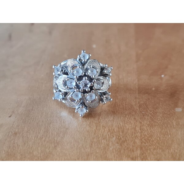 Toller Ring Blüte Silber 925 mit Steinchen.