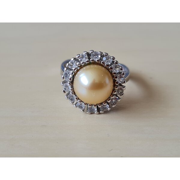 Ring Silber mit Perle und Zirkonia. Größe 53. Breite 1,5 cm. Gestempelt mit 800.