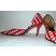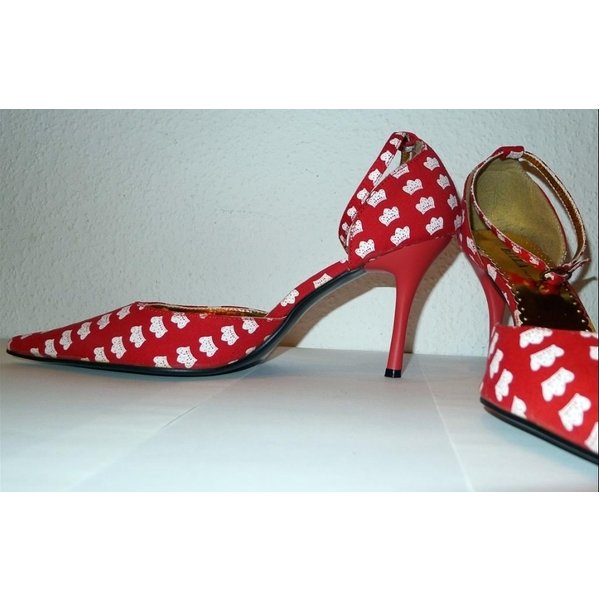 Rote High Heels mit Kronenmuster, die Absatzhöhe beträgt ca. 9 cm.