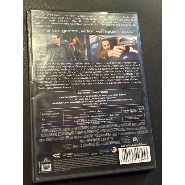 In einer Welt, in der Loyalität käuflich ist und Betrug zum Alltag gehört, ist er eine neue und absolut tödliche terroristische Waffe - der Auftragskiller! Der Kalte Krieg ist vorbei, aber an den Fronten der neuen Weltordnung kämpfen Söldner, deren eiskalte Planungsfähigkeit und kompromisslose Kampfkraft dem zur Verfügung stehen, der am meisten bezahlt. Fünf dieser Kämpfer, die man "Ronin" nennt - nach den Ronin, den herrenlosen Samurai aus dem feudalen Japan - werden von einem mysteriösen Auftraggeber für eine gefährliche Mission in Paris zusammengeführt: Diebstahl einer Aktentasche mit absolut geheimen Inhalt. Was nach einem glatten Durchmarsch aussieht, entwickelt sich zu einem tödlichen Wettlauf mit anderen Unterweltorganisationen. Die nervenzerfetzende Spannung erreicht ihren Höhepunkt, wenn aus Verrätern Verratene werden und alles auf Messers Schneide steht...