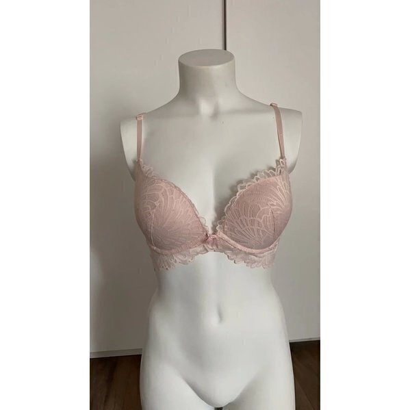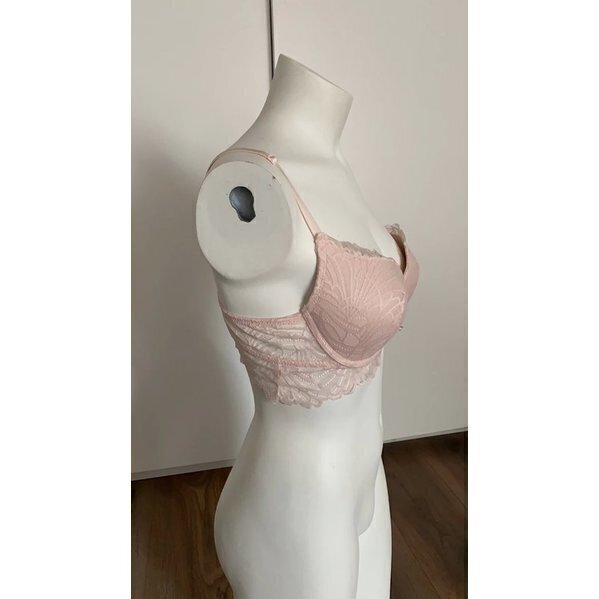 Romantischer zarter BH, mit unter Brust spitze und Schleifchen in der Mitte. Feste Cups mit Bügel, leicht gepolstert aber ohne extra Push Up Effekt.
