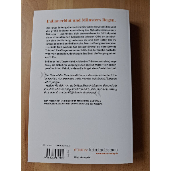 Die junge Zeitungsjournalistin Christine Neustedt besucht die große Indianerausstellung im Naturkundemuseum Münster - und findet sich unversehens im Mittelpunkt einer dramatischen Mordserie wieder. Gibt es tatsächlich eine Verbindung zwischen ihr und dem Täter, der ihr Informationen über indianische Beschwörungszeremonien zuspielt? Und warum hat sie auf einmal so verstörende Träume? Eine Cheyenne versucht ihr bei der Suche nach der Wahrheit zu helfen, doch auch ihn lässt die Vergangenheit nicht los.