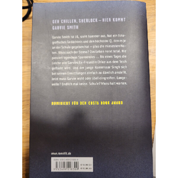 Garvie Smith ist 16, sieht hammer aus, hat ein fotografisches Gedächtnis und den höchsten IQ, den es je an der Schule gegeben hat - plus die miesesten Noten. Wozu auch der Stress? Das Leben nervt total. Nie passiert irgendwas Spannendes … Bis eines Tages die Leiche von Garvies Ex-Freundin Chloe aus dem Teich gefischt wird. Und der junge Kommissar Singh sich bei seinen Ermittlungen einfach zu dämlich anstellt. Jetzt muss Garvie wohl oder übel eingreifen. Langeweile? Endlich mal keine. Schule? Muss halt warten.