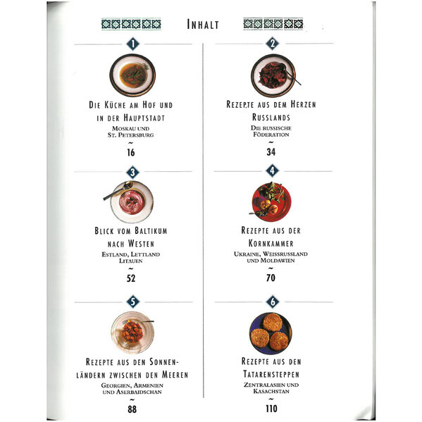 Ich trenne mich von einigen Büchern meiner großen Kochbuch-Sammlung. Dies ist ein Buch über die russische Küche und es enthält 6 Kapitel (siehe Bild 2) und eine Einleitung.
