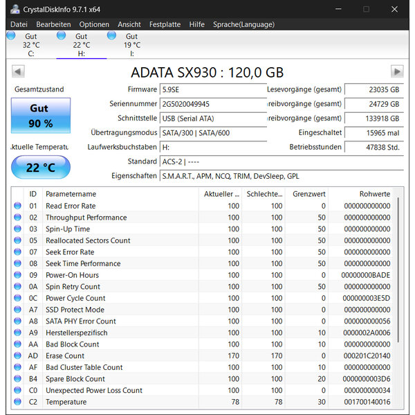 Wegen Systemaufrüstung abzugeben. Funktionstüchtiger Gebrauchtzustand und fehlerfreie Fesplatten-Analyse (siehe CrystalDiskInfo).