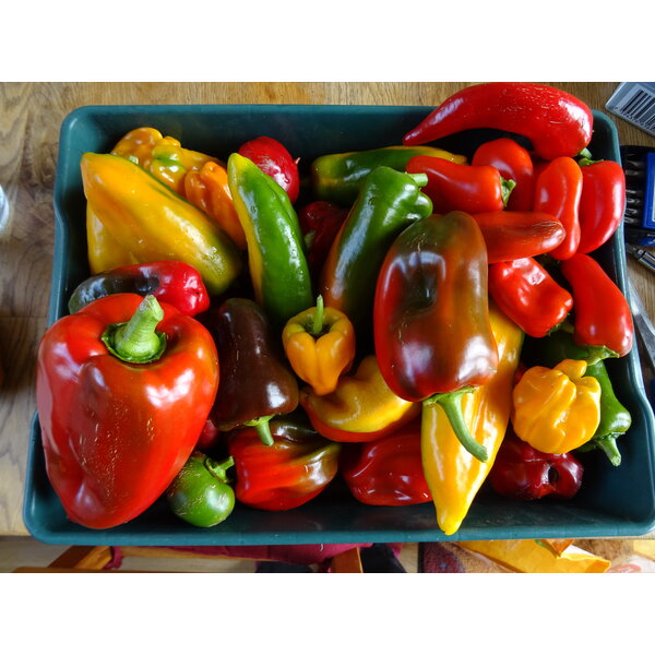 - Zlata (dickwandige kleine Spitzpaprika mit Farbenspiel von hellgelb über orange zu rot)