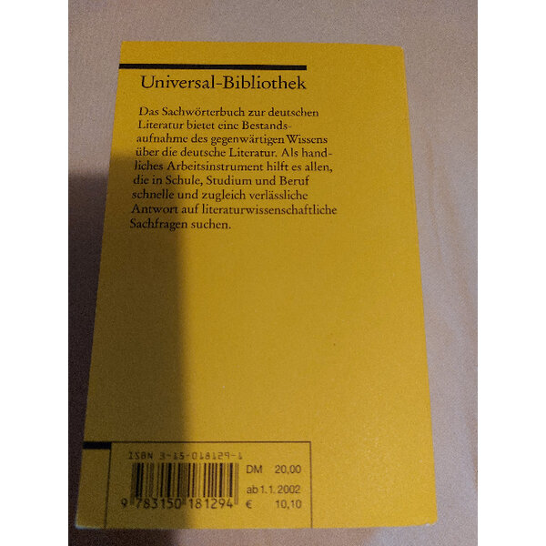 Volker Meids "Sachwörterbuch zur deutschen Literatur" bietet eine Bestandsaufnahme des gegenwärtigen Wissens über die deutsche Literatur. Es stellt Methoden vor, erklärt literaturwissenschaftliche, poetologische, rhetorische und metrische Begriffe, beschreibt Gattungen und ihre Geschichte und gibt komprimierte Darstellungen von Epochen, Strömungen und Traditionen. Darüber hinaus werden die sozialgeschichtlichen Aspekte der Produktion und Rezeption von Literatur in Artikeln über Autor, Leser, Buch und Buchgeschichte, über literarische Vereinigungen und Institutionen einbezogen. Ein handliches Arbeitsinstrument für alle, die in Ausbildung oder Beruf mit Sachfragen zur Literatur konfrontiert sind.