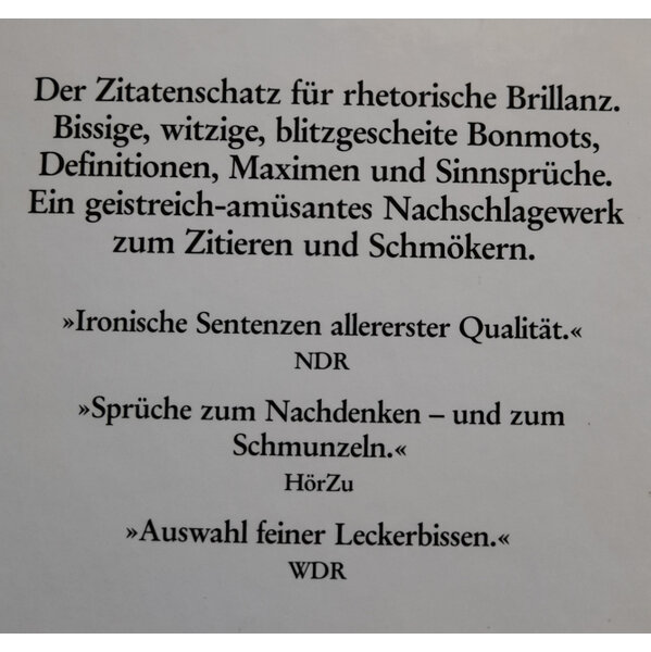 Zitatenschatz für rhetorische Brillanz, bissige und witzige Bonmots, Sinnsprüche zum Zitieren und Schmöckern