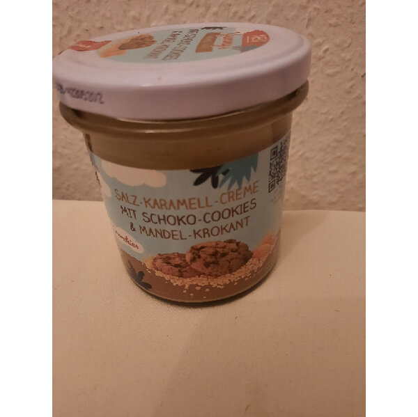 Feine Salz-Karamell-Creme mit Schoko-Cookies und Mandel-Krokant