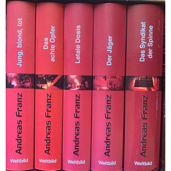 Krimi Sammeledition von Andreas Franz im Schuber. Julia Durant Krimis 1-5.Jung, blond, tot, Das achte Opfer, Letale Dosis, Der Jäger, Das Syndikat der Spinne.,