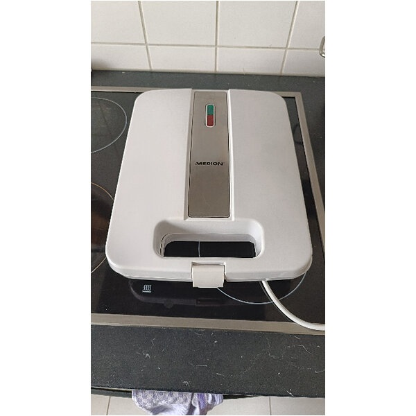 Sandwichmaker von Medion in weiß. Wenig benutzt, aber mit Gebrauchsspuren. Voll funktionsfähig.