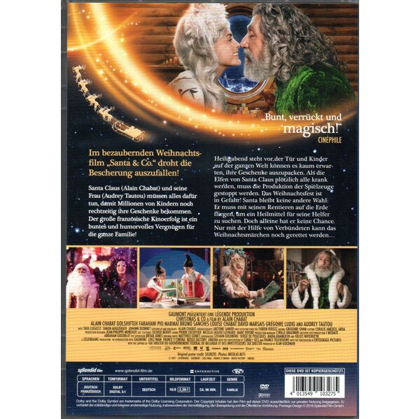 Im bezaubernden Weihnachtsfilm „Santa & Co.“ droht die Bescherung auszufallen! Santa Claus (Alain Chabat) und seine Frau (Audrey Tautou) müssen alles dafür tun, damit Millionen von Kindern noch rechtzeitig ihre Geschenke bekommen. Der große französische Kinoerfolg ist ein buntes und humorvolles Vergnügen für die ganze Familie!