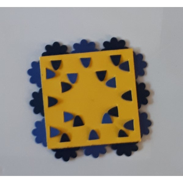 Schablone zum Karten basteln. Man legt die Schablone auf Papier, und ritzt mit einem Bastelcuttermesser diese Schlitze nach, und in diese kann man dann seine Stanzteile stecken, und somit Karten verschönern. Siehe Bsp.bild
