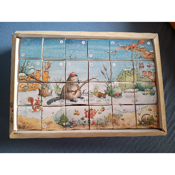 Leere (!) Schachteln von Samen-Adventskalender mit Rahmen, beides aus Karton. Wenn man die Schachteln umdreht, erscheint ein zweites Motiv (Frühling). An der Seite sind Infos und Bilder zu Samen und Pflanzen, Samen sind aber nicht mehr enthalten. Kann als Adventskalender neu befüllt oder für neue Samen oder andere Kleinigkeiten benutzt werden.