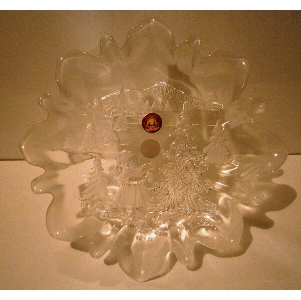 Schale, Keksteller, mit Fuß, transparent, Fuß Mattglas, mit weihnachtlichem Motiv (Mädchen hängt Kugeln an Baum). Durchmesser etwa 22 cm, Höhe 11 cm, ziemlich schwer. Von Walther Glas, wie man auch dem Aufkleber entnehmen kann.