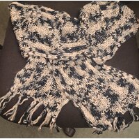 Dünnes schwarzes Halstuch in Dreiecksform mit Bommeln. ... mehr