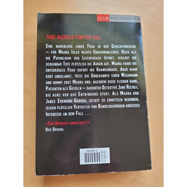 Eine namenlose junge Frau in der Gerichtsmedizin - für Maura Isles nichts Ungewöhnliches. Doch als die Pathologin den Leichensack öffnet, schlägt die scheinbar Tote die Augen auf. Maura fährt die unterkühlte Frau sofort ins Krankenhaus. Aber kaum dort angelangt, tötet die Unbekannte einen Wachmann und nimmt erst Maura und, nachdem diese fliehen kann, Patienten als Geiseln - darunter Detective Jane Rizzoli, die kurz vor der Entbindung steht. Als Maura und Janes Ehemann Gabriel selbst zu ermitteln beginnen, zeigen plötzlich Vertreter und Bundesbehörden größtes Interesse an dem Fall...