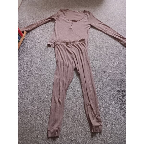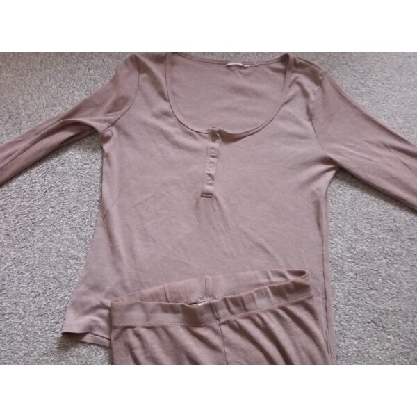 Alle Etiketten entfernt, Material sollte aber Baumwolle oder Viskose sein, ist weich und angenehm auf der Haut, Maße: Oberteil Achsel zu Achsel: ca 50 cm, Länge: 60 cm, Hose: Bund ( einfach gemessen): ca 36 cm dehnbar bis 46 cm, Hose Gesamtlänge: 98 cm,