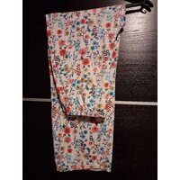 Bequemer Schlafanzug mit Blumenmotiv. Die Hose ist weit geschnitten, hier sind die Maße: Länge der Hose 85 cm, Bundweite 29 cm, Achselweite des Shirts 29 cm.