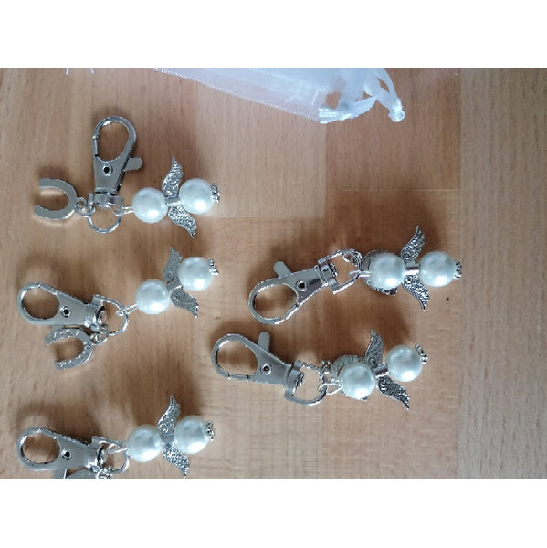 5 Schlüsselanhänger mit Geschenksäckchen.