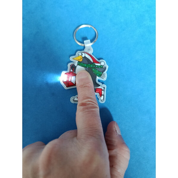 Schlüsselanhänger Pinguin, eenn man ihn drückt leuchtet ein Licht aus der Laterne