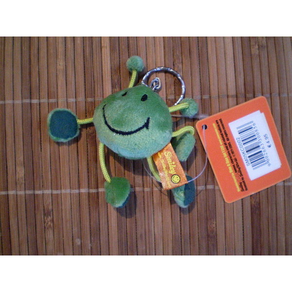 Niedlicher Smiley Schlüsselanhänger aus Stoff. Auf der Rückseite steht: I´m an alien.