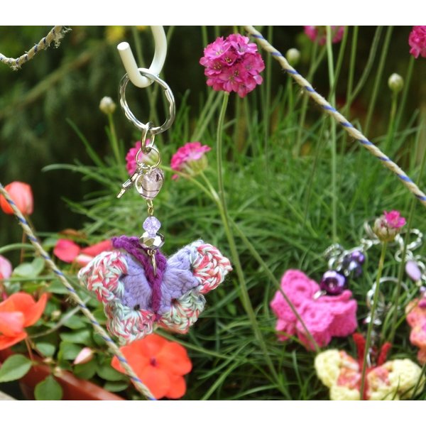 Zauberhafter kleiner Schmetterling als Schlüsselanhänger oder Taschenbäuler an einer Perlenkette mit Charms.