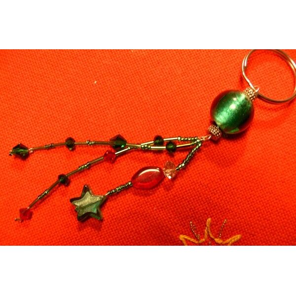 Von mir gefertigter Schlüsselanhänger mit großer grünen Glasperle mit Metalleinzug.