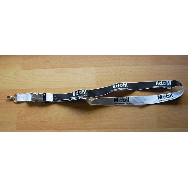 Original Schlüsselband der MOBIL Betriebskrankenkasse mit Minikarabinerhaken und abnehmbarer Schiebeschnalle. Zum Befestigen von Schlüsseln und zum Umhängen um den Hals.