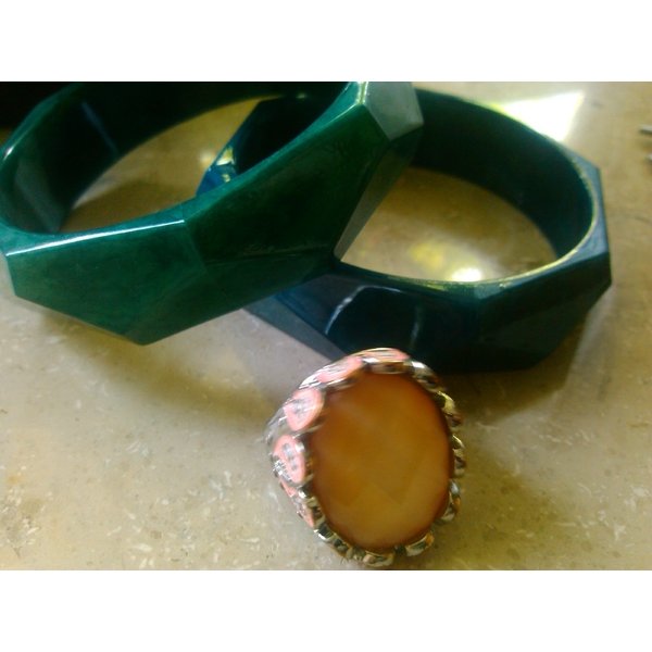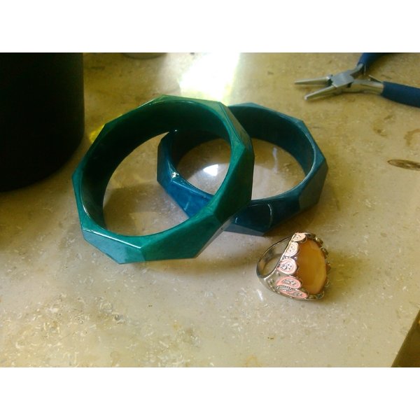 Ring (leichte Gebrauchsspuren), 2 acryl Armbänder, 2 Paar Ohrringe (Neu!)