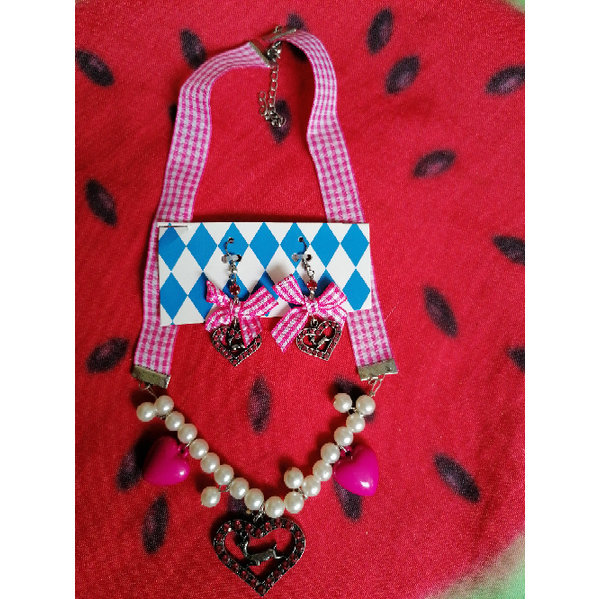 Schmuckset Hirsch Trachtenschmuck Kette Ohrringe Tracht Modeschmuck mit Perlen Herz