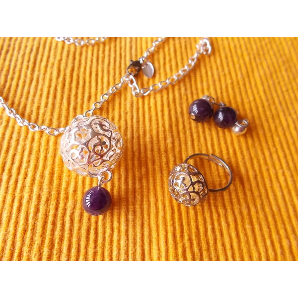 Modeschmuck, Amethyst, wmope, Modeschmuck, Ring, Kette, Ohrstecker, Ohrringe