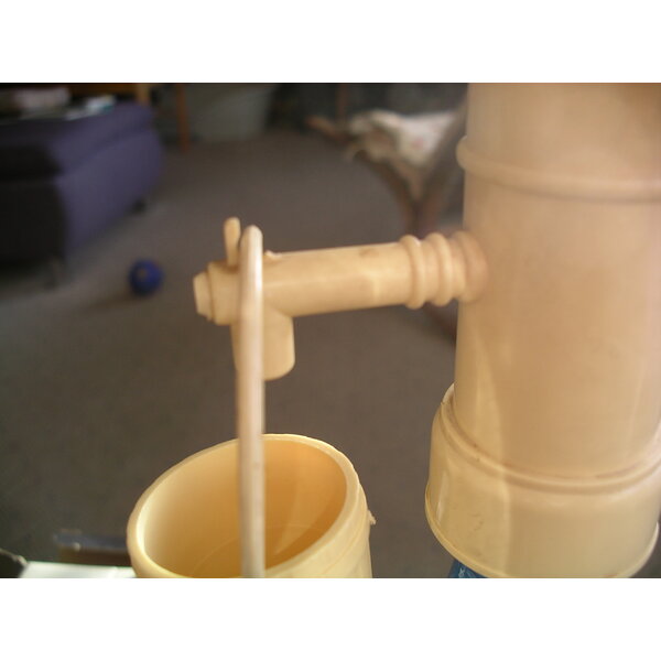Der einzige wirkliche Defekt ist auf Foto 3 zu sehen:Hinter den Henkel des Eimerchens gehört noch so ein Näschen wie vor dem Eimerchen,damit es nicht verrutschen kann beim "Betanken",aber ein findiger Geist könnte sich vermutlich auch anders behelfen(mir würde spontan ein extrem kleiner Gummiring einfallen,den man drumherum wickelt).