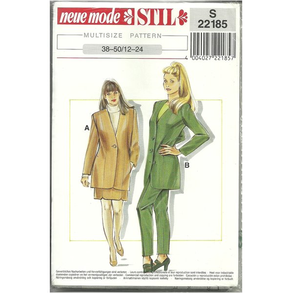 Schnitt für ein Kostüm bzw. einen Hosenanzug mit langer kragenloser Jacke (Gehrock)