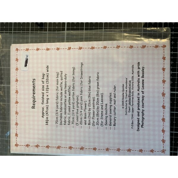 Es handelt sich um einen Schnitt für eine wunderschöne Tasche von der australischen Firma Rosalie Quinlan mit Angabe, was zum Nähen erforderlich ist.